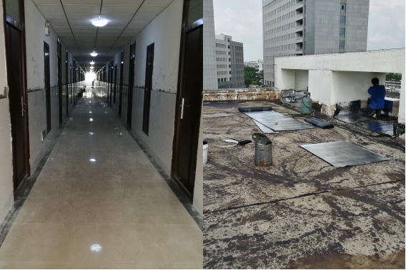为最大限度减少施工造成的影响,服务中心利用假期组织开展了多项零星维修工作。他们战高温、冒酷暑,用汗水诠释了责任与担当。十多天里,就完成西区高压环网柜管线抢修、研究生公寓墙面及屋顶维修、科学家园活动室修缮、局部水电改造和新食堂周边绿化等十余项任务。期间,中心领导坚持每日现场巡查,了解项目进展,监督施工质量,关心坚守一线职工们的作业安全。