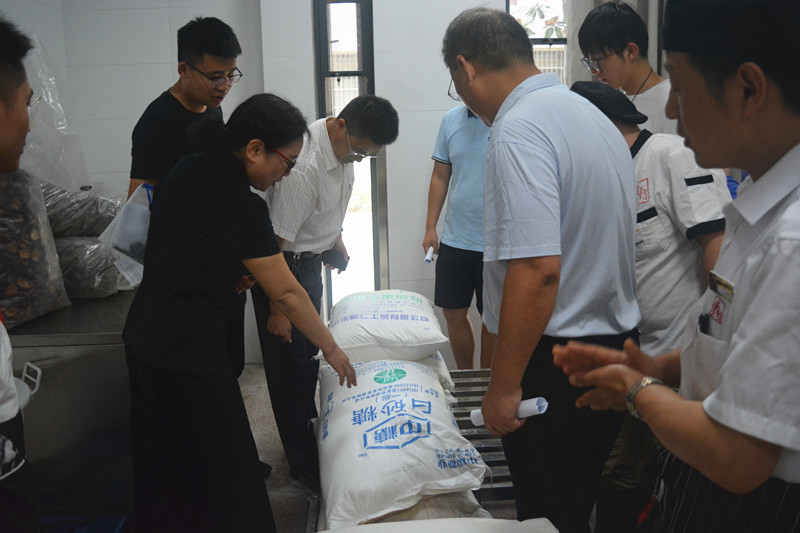 检查组分别来到科西餐厅、新职工食堂、三河餐厅和李府四个食堂,对各食堂的大厅、后堂、库房、制作加工间以及半成品菜肴的储藏等区域的卫生状况进行了全面而详细的检查。检查过程中,重点检查各食堂在原材料的采购、检验、储存、生产加工、售卖以及餐具清洗消毒等环节所采取的安全防范和措施。检查过程中未发现使用违禁食品和添加剂等,原材料采购、储存规范,品质、新鲜度良好。但也发现个别食堂存在后堂及加工间极少苍蝇在飞,少量原材料受潮变质等问题。