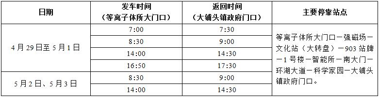 因科学岛路提升改造工程于4月28日晚21:00--5月4日凌晨2:00进行封闭施工,期间903路公交车暂停营运。为方便大家出行,服务中心决定增开临时班车(按照1元/人/次售票乘车),运行时间具体安排如下: