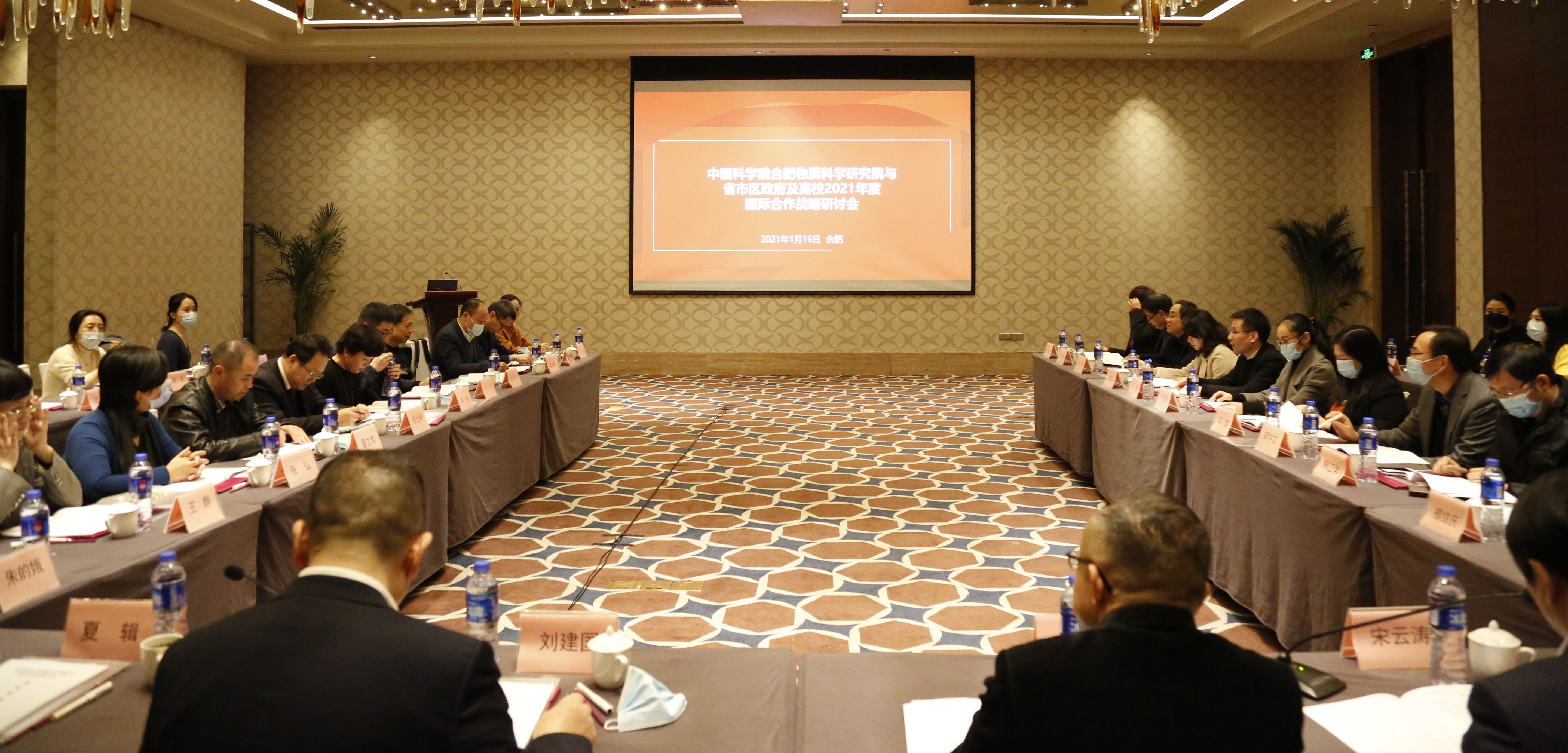为了落实十九届五中全会精神,持续推进全方位、多层次、宽领域的对外开放,剖析当前国际合作面临问题,推进全省国际合作高质量发展, 1月16日,合肥研究院牵头发起了跨政府部门、跨科研院校的安徽省市区政府及高校的国际合作战略研讨会。安徽省外事办副主任秦俊峰,科技厅副厅长夏辑,发改委合肥综合性国家科学中心工作处处长朱的娥,商务厅外资处副处长穆士兵,教育厅、人力资源和社会保障厅等安徽省市区政府代表,以及中国科大等高校国际合作部门负责人近40人参加了此次研讨会。合肥研究院院长刘建国致欢迎辞,副院长宋云涛主持。