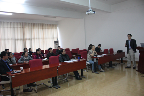 傅教授是埃默瑞大学化学生物学研究中心主任、功能基因组学研究中心主任和Winship癌症研究所药物研发部主任。他多年致力于细胞生长调控的研究并探索新的抗癌治疗新策略,是国际上以蛋白相互作用为靶点的化学生物学研究领域的权威学科带头人。访问期间,傅教授为科研人员做了题目为“肿瘤基因组改造为新的癌症药物靶标发现提供了新的机遇”(Cancer Genomic alterations offer unprecedented opportunities for new cancer drug target discovery)的学术报告。报告中他首先介绍了他们的实验室的主要研究领域(蛋白-蛋白的相互作用),及其研究平台的设备、研究能力。展示了美国NIC化学生物学研究架构和CTD2抗癌靶点发现与发展研究网。在从基因组到癌症治疗的研究内容中,傅教授结合自身的研究成果介绍了从基因水平到蛋白水平,发现以蛋白与蛋白的特异相互作用界面为靶标的药物小分子的筛选过程。