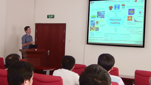 对超导磁通态的研究是超导材料研究中最基本也是最重要的科学问题之一,而人们对多带超导磁通的认识一直缺乏清晰的图像。M.V.Milosevic教授在报告中从扩展的金兹伯格-朗道(Ginzburg-Landau)理论出发,详细地介绍了其研究组提出的多带超导体的理论模型,以及对多带超导类别的新认识,并以动力学模拟为基础,深入浅出的阐述了多带超导体中的超导磁通态与电流和钉扎中心的相互作用等物理问题。会后,双方探讨了未来在超导磁通动力学等方面开展合作等事宜。