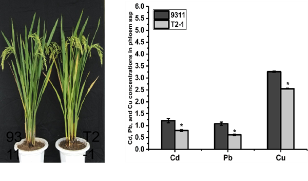 我们发现水稻籼粳亚种籽粒在重金属Cd积累差异,以及在营养生长和生殖生长阶段Cd吸收、运转、积累的规律,建立一套“籼改粳”以及花后水肥调控,实现籽粒降Cd积累的技术。通过辐射诱变创建和重金属LIBS(激光击穿诱导)高通量快速检测平台,筛选出一批水稻重金属低积累的水稻突变材料,选育成一批水稻重金属低积累品种(系),其中T2-1在兼顾产量、品质等优良性状的同时,对重金属Cd、Pb、Cu均有降低的作用。