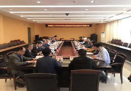 10月27日,合肥研究院与安徽理工大学战略合作协议签署仪式在安徽理工大学舜耕苑二楼会议室举行。安徽理工大学党委书记郭永存,党委副书记、校长袁亮,副校长郑明东,合肥研究院院长匡光力、党委书记王英俭、副院长江海河等出席仪式。