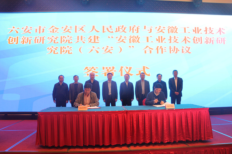 匡光力与叶露中分别代表双方签署《六安市人民政府与中科院合肥物质科学研究院战略合作协议》;合肥研究院应用所所长田兴友与六安市金安区区长霍绍斌签署了《金安区人民政府与安徽工业技术创新研究院共建“安徽工业技术创新研究院(六安)”合作协议》;中科院合肥技术创新工程院院长李季与裕安区区长王仲儒签署了《裕安区人民政府与中科院合肥技术创新工程院合作协议》。