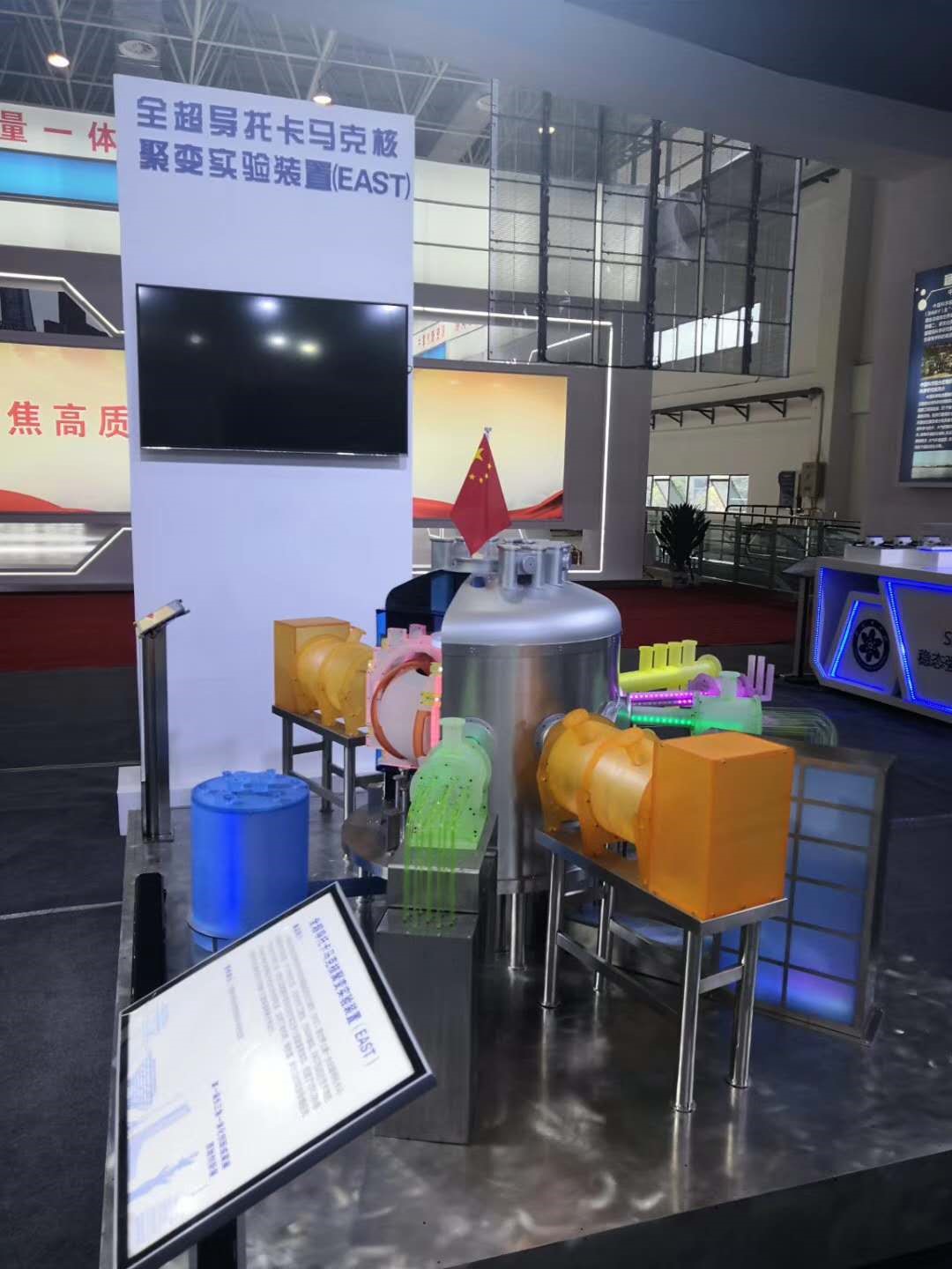 本次成果展分序厅、原始创新展区、技术创新展区、产业创新展区和共享合作展区(含G60合作)五大展区,重点展示了长三角区域创新一体化最新重大科技创新成果。此次展会,合肥研究院选送了包括全超导托卡马克核聚变实验装置、稳态强磁场实验装置、聚变堆主机关键系统综合研究设施、大气环境立体探测研究实验设施等10件科技展品(模型、展板、实物等)参展。其中,全超导托卡马克核聚变实验装置作为安徽省唯一的巡展展品,在开幕式后接受了国家相关部委以及一市三省党政主要领导的检视。