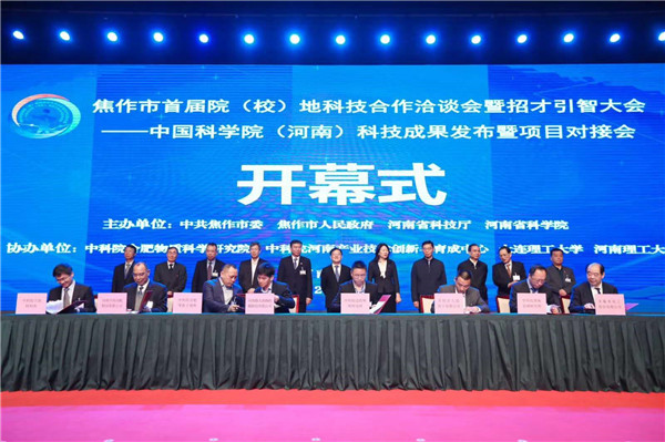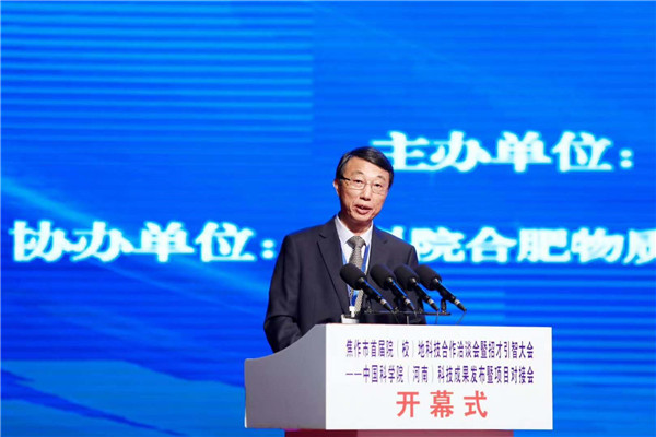 10月17日至19日,2020年度中科院(河南)科技成果发布暨项目对接会在河南省焦作市隆重举行,本次大会由河南省焦作市委市政府、河南省科技厅、河南省科学院联合主办,中科院合肥研究院、中科院河南中心、大连理工大学、河南理工大学协办。合肥研究院院长刘建国、河南中心主任吴四发、智能所党委书记吴丽芳、合肥创新院院长吴仲成、科技促进发展处以及相关科研人员40余人出席了对接会。