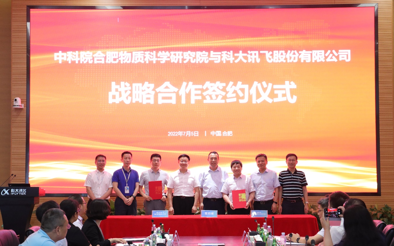 75日,中国科学院合肥物质科学研究院(以下简称“合肥研究院”)与科大讯飞股份有限公司(以下简称“科大讯飞”)在科大讯飞总部签署战略合作协议。合肥研究院院长刘建国,党委书记黄晨光,副院长吴海信,科大讯飞董事长刘庆峰,讯飞产投董事长徐景明,科大讯飞研究院院长胡国平见证签约,合肥研究院副院长宋云涛与科大讯飞研究院执行院长刘聪代表双方签署协议。