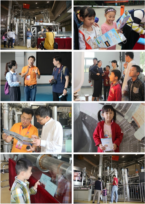 参观者有来自合肥八中、合肥五十中、南门小学、阜阳五中等合肥以及省内中小学校的师生,也有来自兄弟单位的科技工作者,更多的是来自市属各辖区的热心群众。他们或集体组织,或扶老携幼,或三三两两,奔赴这场一年一度的科普之旅。在EAST大厅,社会公众一览人造小太阳的真容,感受核聚变研究的科学魅力;在装置模型前,他们了解了EAST复杂的内部构造和工作原理,感叹大科学工程项目的难度和挑战;在ITER国家实验区,他们近距离接触我国聚变工程高精尖技术,为中国创造而自豪;在现代科技馆,他们跟随科普志愿者们一同探寻真知。人造小太阳的模样以及它的目的和用途,核聚变研究的必要性和聚变能的优越性,等离子体的概念,世界聚变研究的概况,我国科学家的贡献,核聚变能离我们还有多远……这些公众感兴趣的话题在开放日这天,通过实地参观考察,听取通俗介绍,普通大众的心里或多或少有了较之以前更为理性的认识,找到了自己想要的答案。