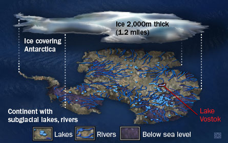 南极冰原下埋藏有发达的水系,包括湖泊和河流
