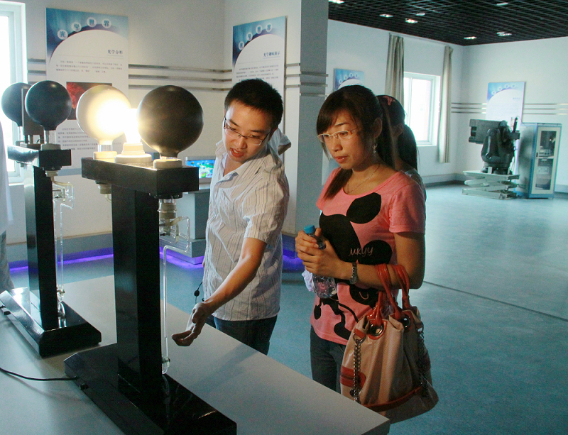 在研究生会成员的带领下,同学们分别参观了合肥现代科技馆的“能源世界”、“神奇的材料”、“光学世界”以及“智能时代”四大展厅。在灯光和墙壁颜色的交相辉映中,各种科普展板让同学们目不暇接,不由自主地沉浸在科学的气氛中。在展厅,同学们看到了科学岛的骄傲——人造“小太阳”的1:8实验模型,硅材料制备的太阳能电池样板,各种功能奇异的光学晶体,还有能和人进掰手腕比赛的智能机器人等等。通过科技馆工作人员的详细介绍之后,大家进一步了解到其工作原理和社会价值,受益匪浅。参观活动的最后,所有人员一起观看了机器人表演,并为精彩表演送上阵阵掌声。