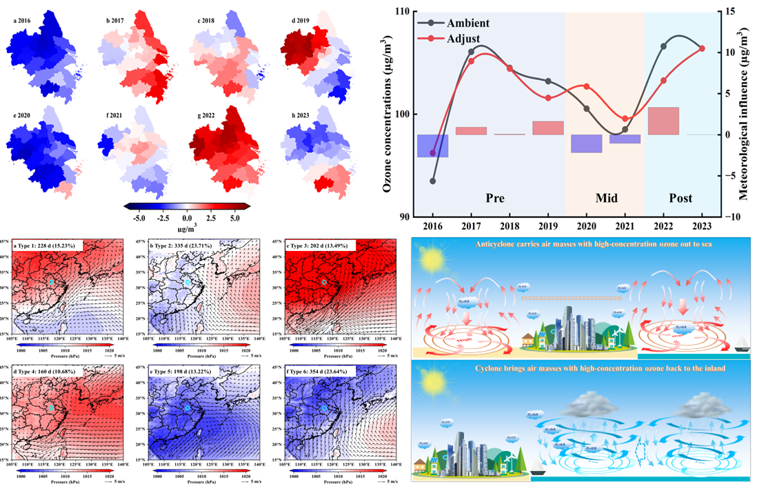 图注:长三角臭氧年际变化、天气分型和多尺度传输