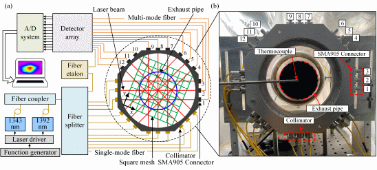 层析吸收光谱微型涡喷发动机尾焰测量系统示意图