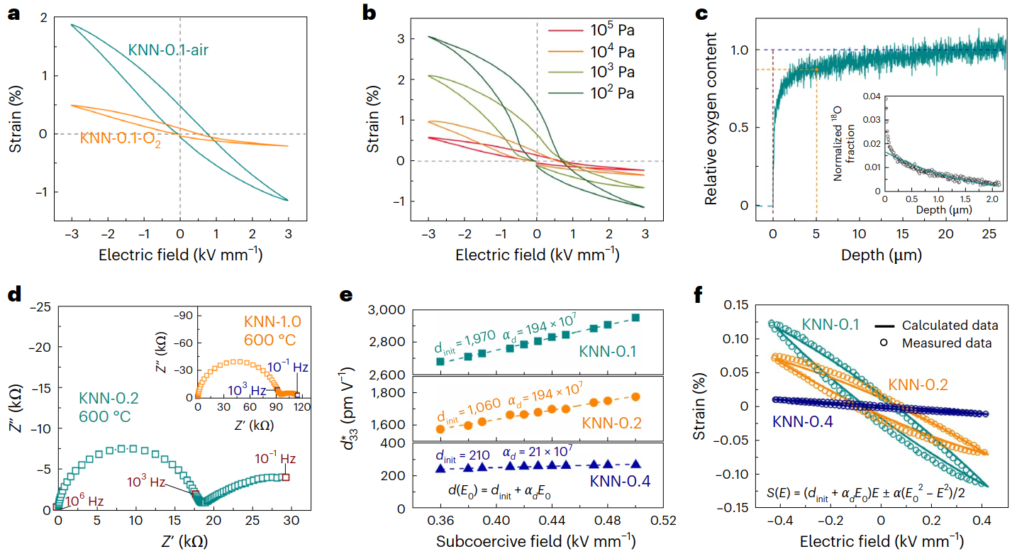 该研究验证了KNN压电陶瓷中氧空位的非均匀分布,阐释了氧空位短程迁移机制,为压电陶瓷及其他氧化物材料的缺陷-性能关系提供了新的分析视角。此外,该KNN压电陶瓷还展现出良好的频率和温度稳定性以及抗疲劳性能,具有通过叠层技术实现在压电多层驱动器中应用的潜力,对智能材料、柔性电子、微纳驱动等领域的研究具有重要指导意义。