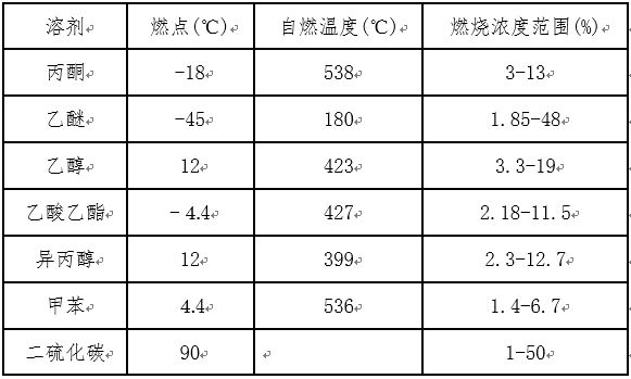 常用易燃有机溶剂的燃点、自燃温度、燃烧浓度范围