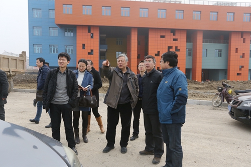 一行人员还考察了一期建设的各个建筑群,现场了解建设进展和各建筑内外的水、电、空调等设施的