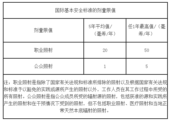 5.国际基本安全标准的剂量限值主要有哪些