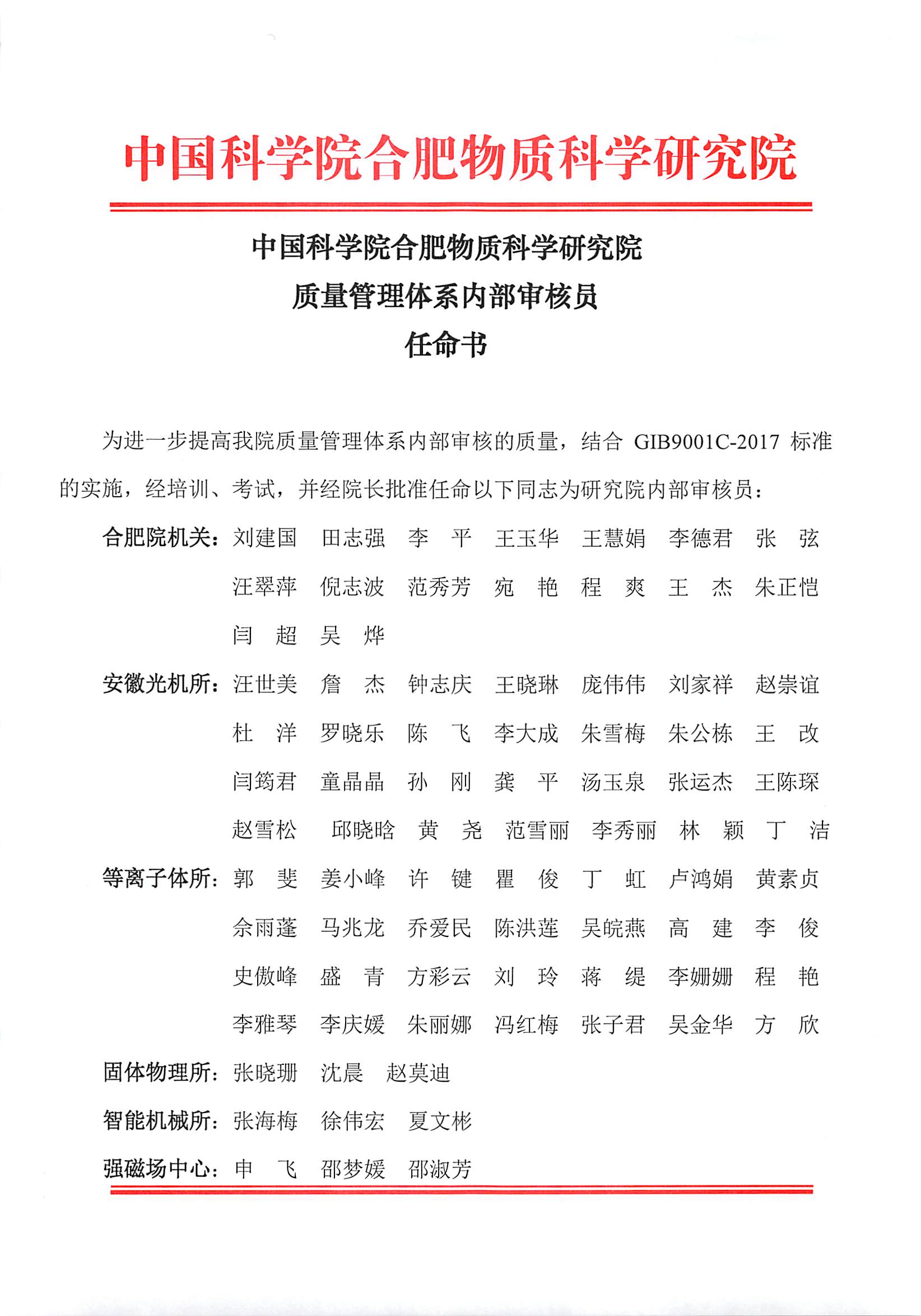 质量管理体系内部审核员任命书