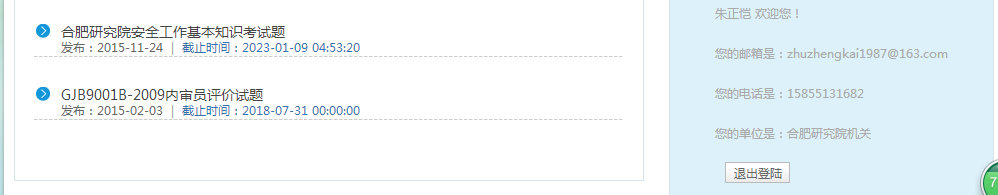 2、注册成功以后,请在考试前登录系统,登录成功以后在右侧能看到注册信息。