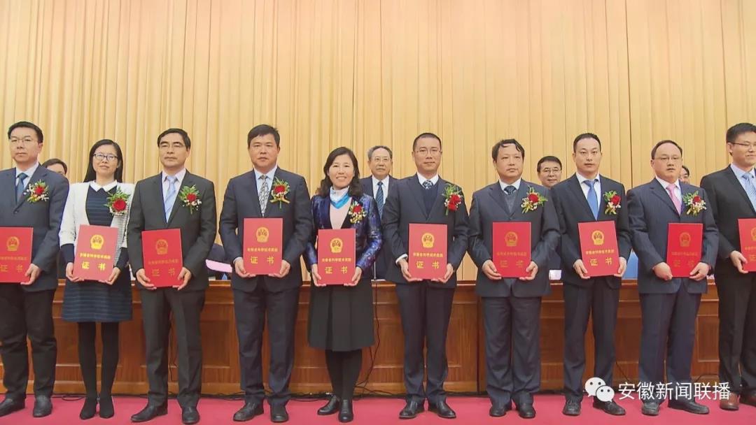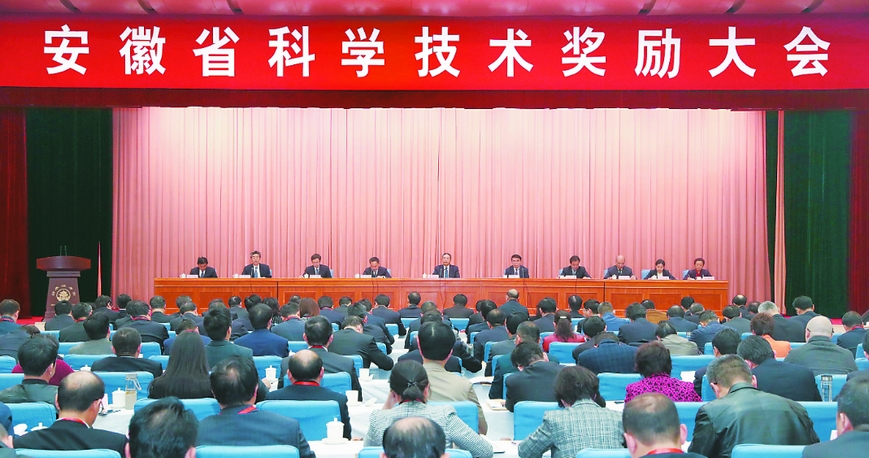 4月11日,2018年度安徽省科学技术奖励大会在合肥隆重举行。省委书记李锦斌、中科院院长白春礼为重大科技成就奖获得者俞书宏、吴宜灿颁奖,省长李国英发表讲话,省委副书记信长星主持会议。省委常委、常务副省长邓向阳宣读2018年度安徽省科学技术奖励决定。省领导丁向群、谢广祥、孙丽芳,科技部副部长李萌、中科院副院长相里斌出席大会。在主席台就座的领导同志为获奖代表颁奖。获奖代表俞书宏、吴宜灿、彭寿作了发言。