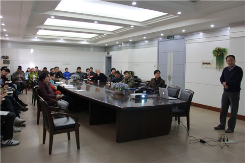 马琰铭教授从利用群智能算法如模仿自然界鸟群觅食行为的粒子群算法(PSO)出发,介绍了探索复杂势能面全局能量最低点的基本流程。通过讲解氙-铁(Xe-Fe)反应机理,金刚石表面重构和非常规超导体超导机制三个应用例子,说明CALYPSO强大的结构搜索预测能力,和对理论设计对新材料发现的引领作用。思考了未来结构预测有望产生原始创新成果的方向,结合“材料基因组计划”,展望结构设计面临的发展机遇。报告结束后,马教授与固体所师生进行互动交流,一一回答了师生们提出的结构预测相关问题。