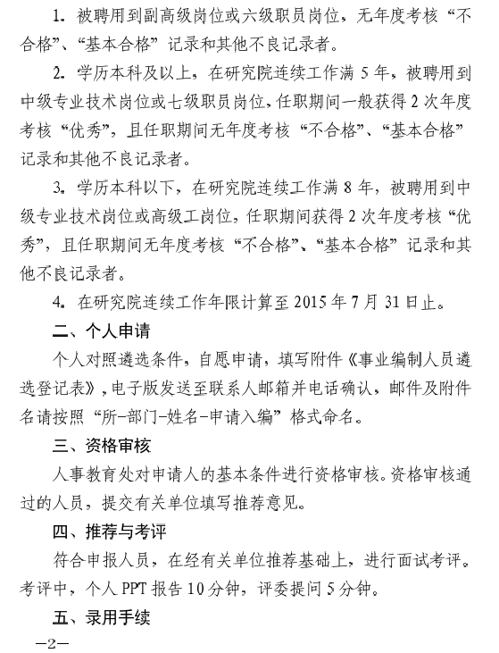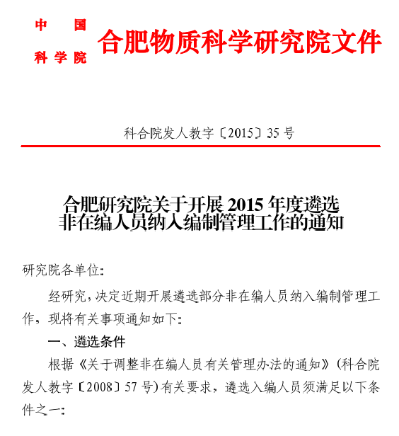 关于开展2015年度遴选非编制人员纳入编制管理工作的通知