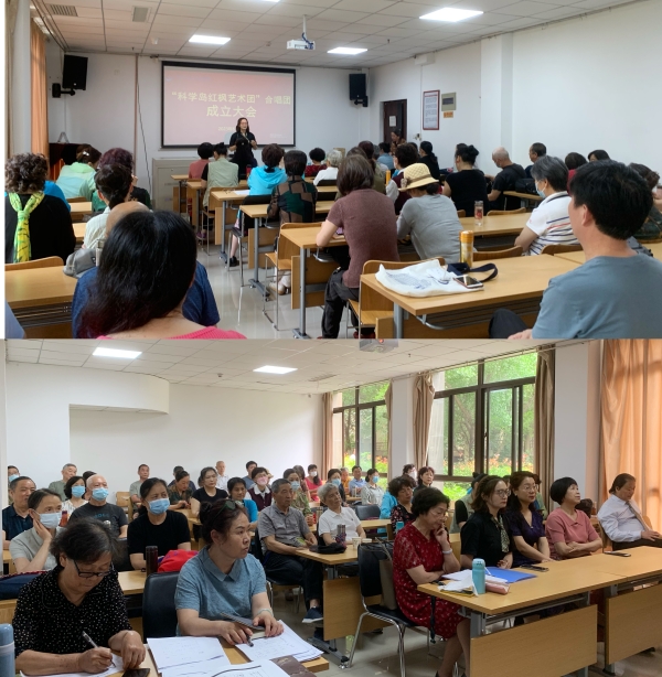 6月3日下午,“科学岛红枫艺术团”合唱团成立大会在科学家园活动站隆重举行。离退休党委副书记吴婧、合唱团指挥、声训老师、合唱团共50多位团员参加会议。