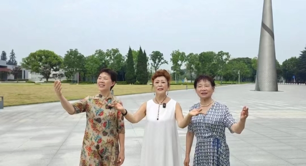 烈日当空,暑气蒸腾,知了不停地在树上鸣叫。老年大学办公室主任丁睿不顾汗水湿透了衣衫,只见他手持摄像机不停地工作,从办公楼前拍到广场,再上大桥对焦取景,录下每一位朗诵人员的最佳风采。离退休党委文体委员陈晓玲是大家心目中的“定海神针”,不但认真指导大家的朗诵排练,还跟随拍摄的全程,做好各项服务工作。赵芳、郑琳、张建平承担了这次朗诵任务,半个月来,郑琳提供了优美的背景音乐,张建平请专家传来了朗诵的范本,赵芳是主角演员,设计出了各式的优雅动作。她们认真背诵诗词、找准节奏,把握住诗歌的内在情感,在拍摄中一气呵成,展示了科学岛老同志的精神风采。