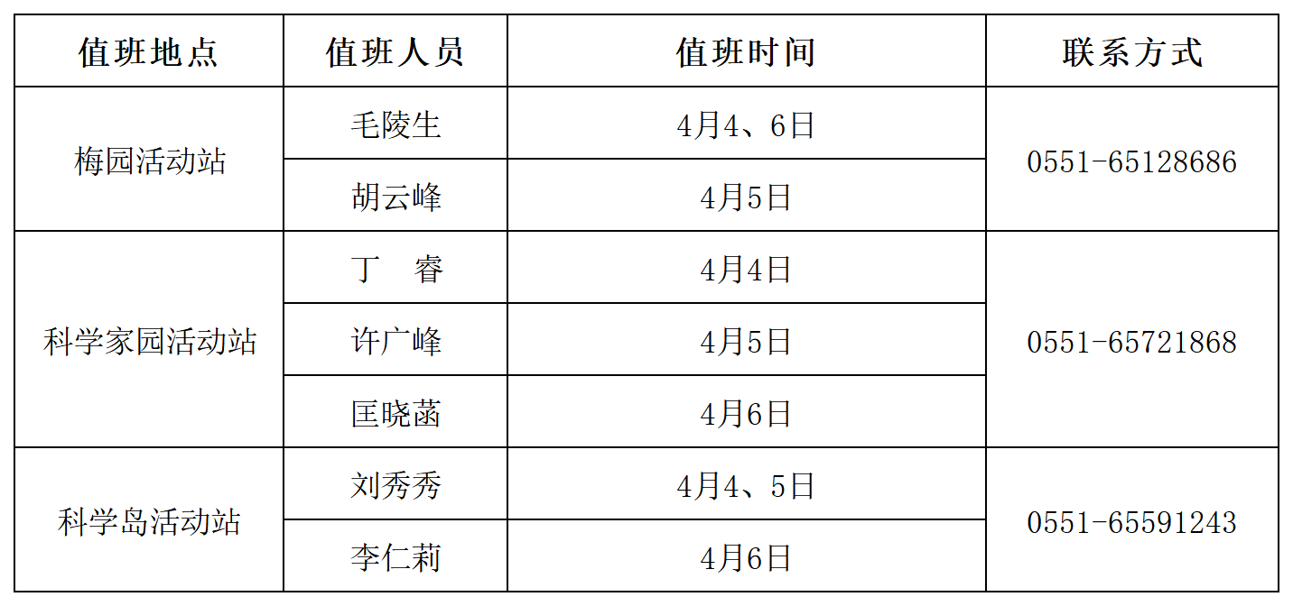 清明节期间,各离退休活动站安排值班人员,具体如下: