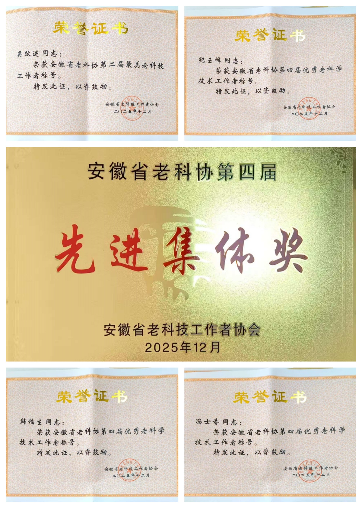 本次会议对全省老科协系统先进典型进行了隆重表彰,一批深耕科研、退而不休的老科技工作者与团结奋进的集体获此殊荣。其中,合肥物质院老科协会员吴跃进荣获第二届 “最美老科技工作者”称号,冯士芬、韩福生、纪玉峰三位研究员获评第四届“优秀老科学技术工作者”,合肥物质院老科协凭借扎实的工作成效与突出的服务贡献,获评第四届 “先进集体”。副会长张毅研究员作为先进集体代表登台交流发言,全面复盘2025年度亮点工作,系统阐述下一年度发展规划,展现了合肥物质院老科协的责任担当与奋进姿态。