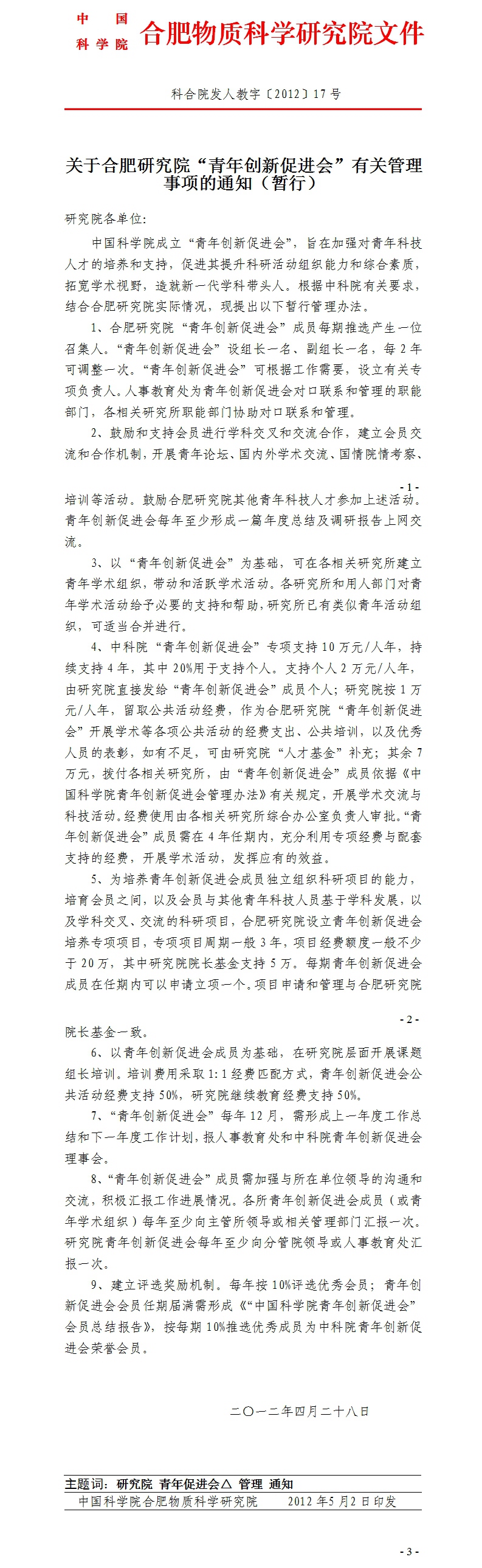 3 关于合肥研究院“青年创新促进会”有关管理事项的通知(暂行).doc