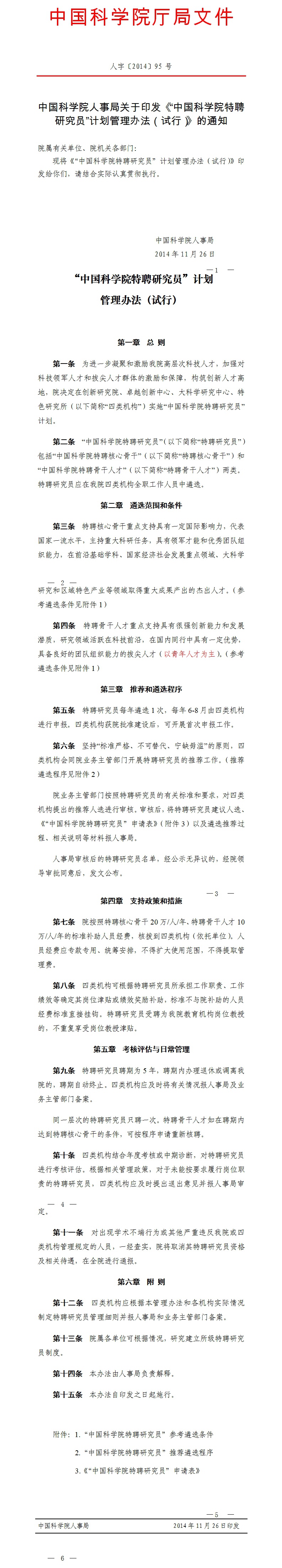6 中国科学院人事局关于印发《“中国科学院特聘研究员”计划管理办法(试行)》的通知.doc