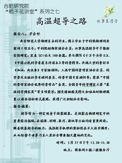 关于举办栀子花讲堂系列之"高温超导之路"科普报告的通知