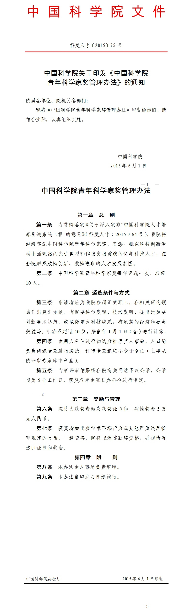 9 中国科学院关于印发《中国科学院青年科学家奖管理办法》的通知.doc