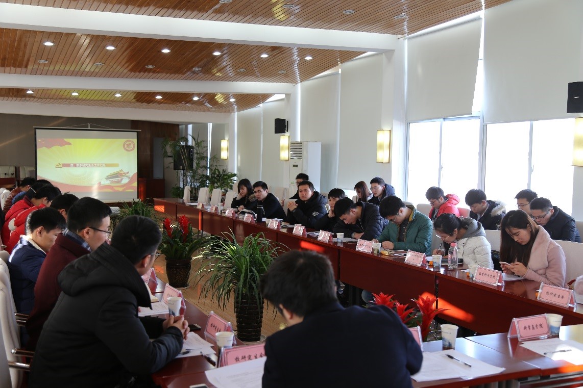 会议第二项由校研究生会做近期工作的回顾,介绍了“不忘初心,砥砺前行”主题学习和系列培训,社会实践、对外交流以及校庆系列活动的筹备。重点说明了目前进行的新年联欢晚会及代培生联谊活动的进度。