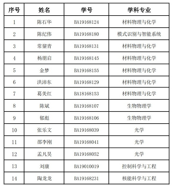根据中国科学技术大学《关于做好2022年度中国科学院院长奖学金初选工作的通知》要求,科学岛分院于2022年3月29日启动中国科学院院长奖学金初审工作。经研究生本人申请、导师把关、研究生处审核,共有24人符合申请要求。4月27日,合肥研究院研究生奖学金评定委员会召开初审会议,评选出以下同学为中科院院长奖学金初选候选人。现将名单公示如下,公示期:2022年4月28日-2022年5月7日,联系人:叶海燕;电话:65591315 。