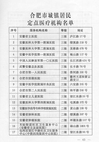 二、住院及门诊特大病(附件1 合肥市城镇居民定点医疗机构名单)
