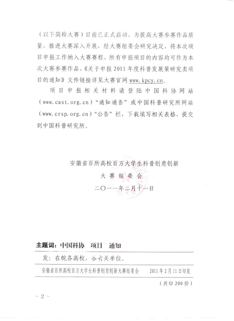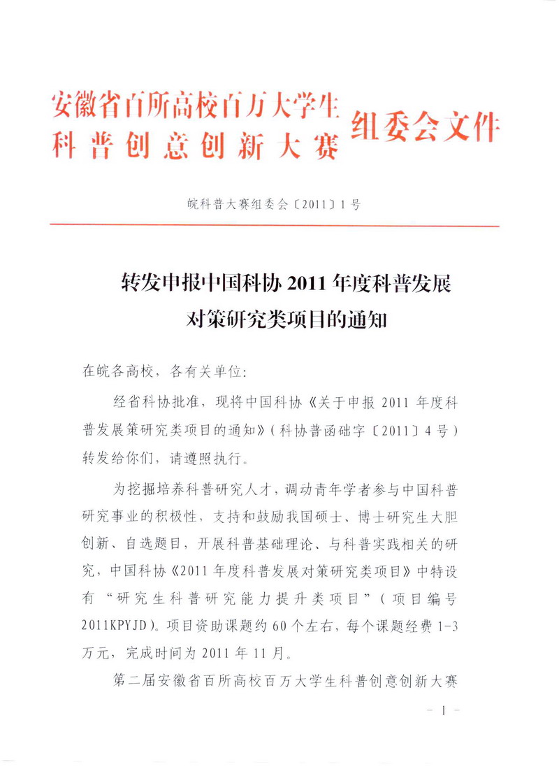 转发申报中国科协2011年度科普发展对策研究类项目的通知