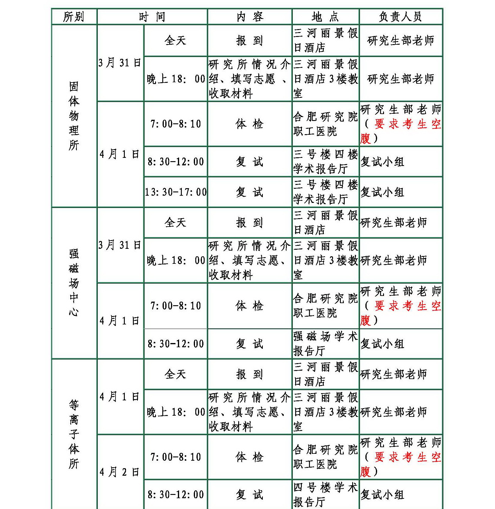 中科院合肥研究院二○一四年硕士研究生入学考试复试日程安排