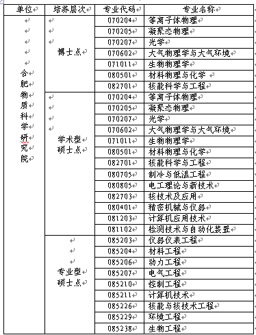 3、博士招生专业目录的数据采集。为了规范博士生招生的考试科目设置,按照逐步过渡统一到中科大一级学科专业下招生的原则。附表2:《中科院合肥研究院2015年招收攻读博士学位研究生计划表》中各项均须填写,其中,博士入学初试第一单元为英语,由中科大统一命题;第二单元专业基础课和第三单元专业课,由合肥研究院统一命题。原则上,一位导师的研究方向不超过2个,一个研究方向的第二单元为一门专业基础课,第三单元可以列二门专业课。请各位导师在博士生招生计划中务必写明考试科目名称、采用的参考书目、出版社以及考试覆盖范围,以便考生查阅。