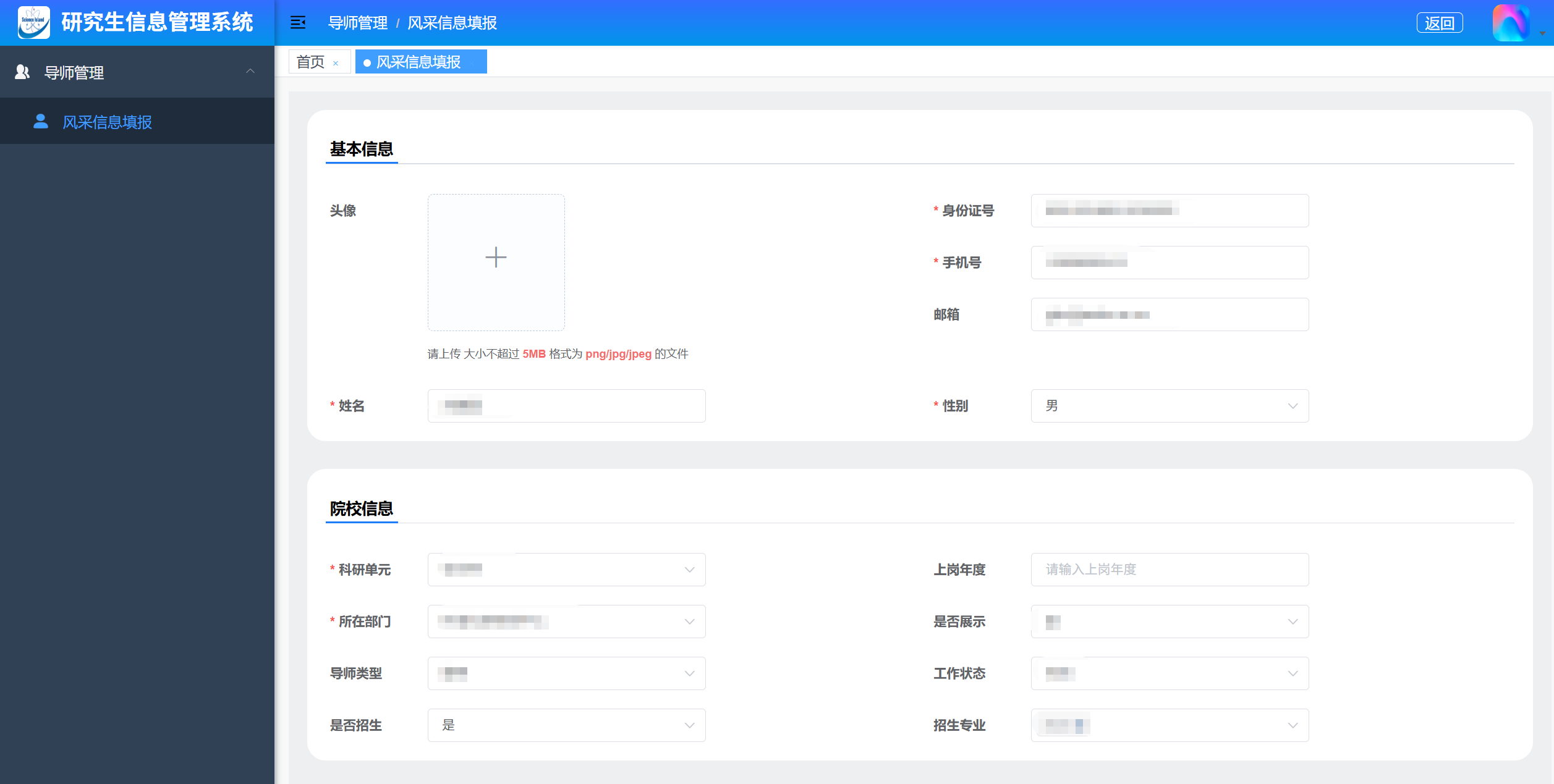 二、导师风采栏目填写或更新