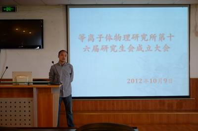2012年10月9日下午,等离子所第十六届研究生会换届会议在等离子所四号楼601会议室举行。研究生部李贵明副主任出席了本次会议,等离子所十五届、十六届研究生会成员及2011级班干部参加了会议。会议由第十六届研究生会主席宋晔主持。