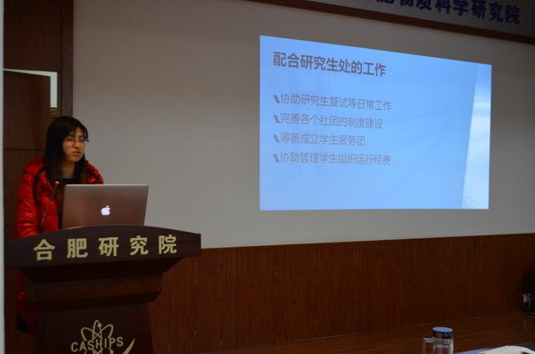 1月13日,科学岛分院研究生会(以下简称院研会)2015年度总结会在2号楼219视屏会议室举行,院研会和各所研会主要负责人、研究生艺术团主要负责人,以及新媒体团队负责人参加了本次会议。此次会议的主要议题是:研究生会2015年年度工作总结及2016年工作展望等。会议由院研会主席彭姣主持。