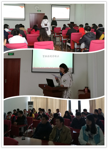 大会开始,首先贺雅茹同学宣读了转正申请,然后贺雅茹的同班同学、入党介绍人、同实验室的同学分别对贺雅茹的转正发表意见,后全体党员经过充分讨论,通过无记名投票表决,通过了贺雅茹同学的转正申请,同意其按期转为中共正式党员。