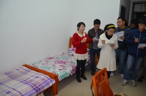 2012年11月2日18时,由等离子所研究生会、2011级班干部和热心同学组成的评委团敲开了第一间参评寝室的大门,拉开了寝室环境评比大赛的序幕。评委们就宿舍桌面、床面、地面、卫生间和整体五部分的整洁程度分别进行计分,每项20分,共计100分,去掉最高分和最低分并计算平均分后,最终在27个宿舍中选出男生宿舍一等奖两名、二等奖三名、三等奖五名,女生宿舍一等奖、二等奖、三等奖各一名。