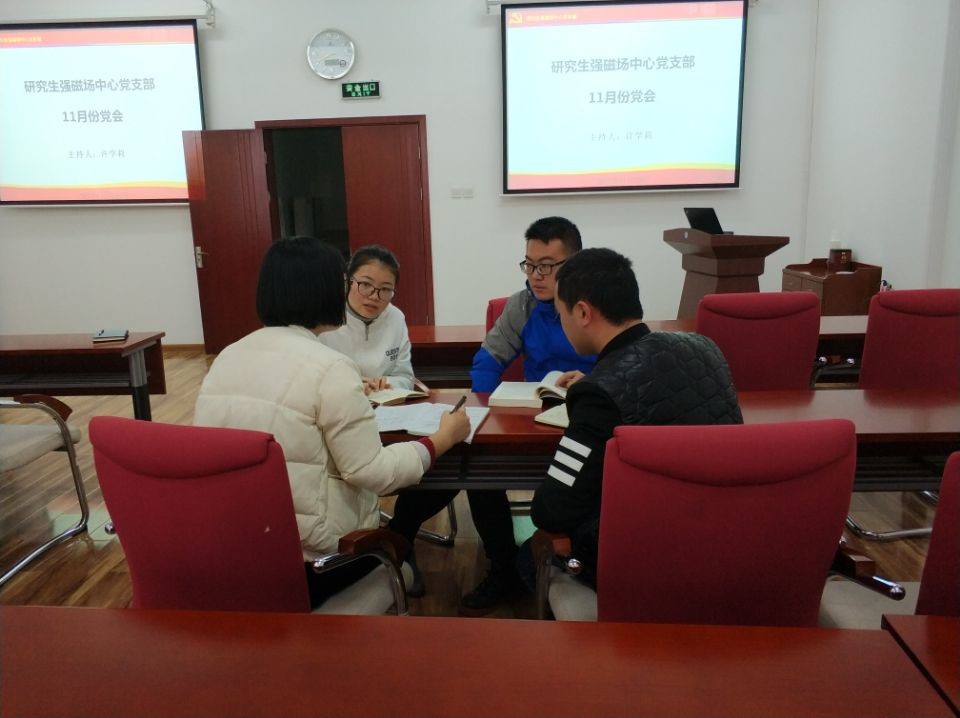20171129日,研究生强磁场中心党支部召开了以“深入学习贯彻十九大精神,严抓基层党员建设”为主题的党员会议。