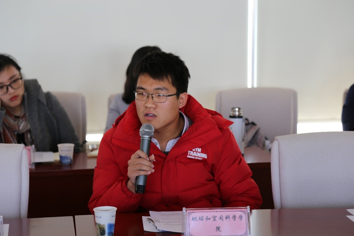 紧接着是会议的主要议程,由各院系学生会做工作汇报。各院系代表以本学期工作开展情况切入,并对各自遇到的问题进行探讨。如物理学院主办了学术年会和各类体育竞赛;工程科学学院、公共事务学院组织及合办了读书交流会、彩虹跑等活动;核科学技术学院、人文与社会科学学院在深化思想引领上,安排了知识竞赛。汇报讨论的现场气氛热烈,不少建设性的提案和经验得到了好评。围绕各个院系研究生会遇到的问题,参会老师和代表发表自己的看法。如大家普遍关心的同学权益工作,郑杰老师提出了“针对性服务”方案,要关心大多数学生呼声,根据学校的实际情况解决问题。对各负责人开展工作提供了启发。