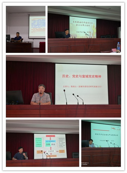 在专题报告环节,安徽省宣城市泾县党校副校长徐朝纲讲述题为《皖南,1941!》的党课,从震惊中外的新四军“皖南事变”出发,重读“皖南事变”这段悲壮的革命历史,带领大家回顾了新四军发展历史以及在云岭扎根三年的“铁军”精神和丰功伟绩。在随后的学习培训中,安徽省宣城市委党校副调研员黄其斌同志、安徽省宣城党史办副主任陈虎山同志以及安徽省宣城市委党校王天云同志以十九大精神为主线,分别作了《夺取新时代中国特色社会主义伟大胜利》、和《历史、党史和宣城党史精神》,以及《新时代开启全面从严治党新征程》的专题报告,与全体研究生党员同志分享了自己的学习心得和实践感悟。历史是最好的教科书,每一场专题报告对同学们来说都是一种精神上、思想上的洗礼,也坚定了同学们发愤图强,立志报国的决心。