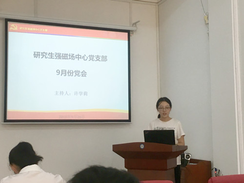 随着部分研究生党员毕业离校、新生党员入学,我支部的党员组成发生了一些变化,为了让全体党员了解我支部的组织结构、学习模式、优秀传统,方便大家更加高效的参与组织生活,许学莉同志详细介绍了研究生强磁场中心党支部的基本组成情况、强磁场中心党支部在思想建设和文化建设等方面取得的成果,并强调全体党员要继续认真学习十九大精神,贯彻执行党员“三会一课”制度的重要性和必要性。随后,叶海燕老师强调了党员同志们要明确党员自身的责任与义务,统一认识,规范行为,要切实将党建工作融入到日常的学习生活中去。