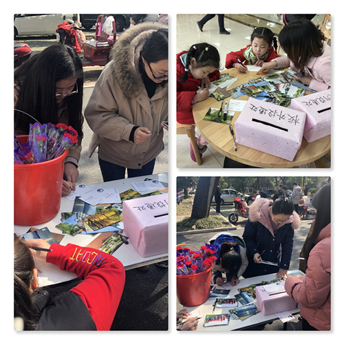 研究生会于3月5日、6日,在中国科学技术大学西校区学生食堂、中校区桃李苑食堂、科学岛李府食堂、三河新食堂、科西食堂布置展架、邮箱、并放置了大量明信片供全体研究生填写和投递,吸引了大批学生填写明信片。活动当场还为同学们赠送了玩偶、鲜花和多肉植物等礼品。